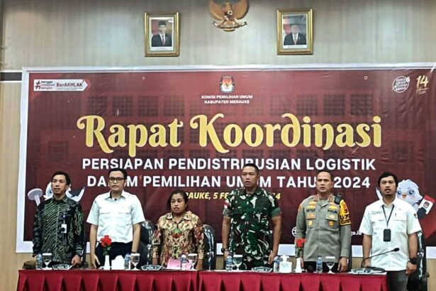 TIFFANEWS.CO.ID,- Komandan Kodim 1707/Merauke Letkol Inf Bayu Kriswandito, S.Hub. Int., M.H.I. mengikuti rapat koordinasi persiapan pendistribusian logistik Pemilu 2024 KPU…