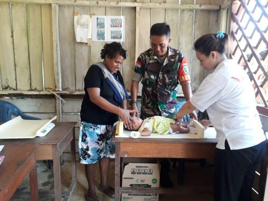 TIFFANEWS.CO.ID,- Babinsa Koramil 1711-03/TM, PosRamil 03/Iniyandit Serka Eri Nuhraeni melaksanakan kegiatan pendampingan Posyandu yang digelar oleh Puskesmas Iniyandit di Pustu Kampung Langgoan, Distrik Iniyandit, Kabupaten Boven Digoel., Senin (16/01).